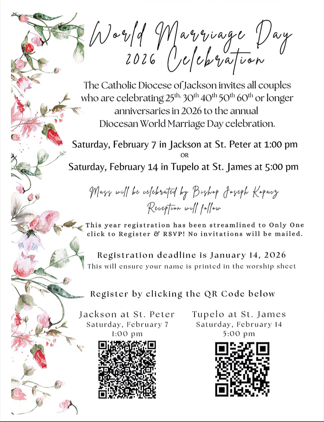 We look forward to celebrating the Holy Sacrifice of the Mass with you!
